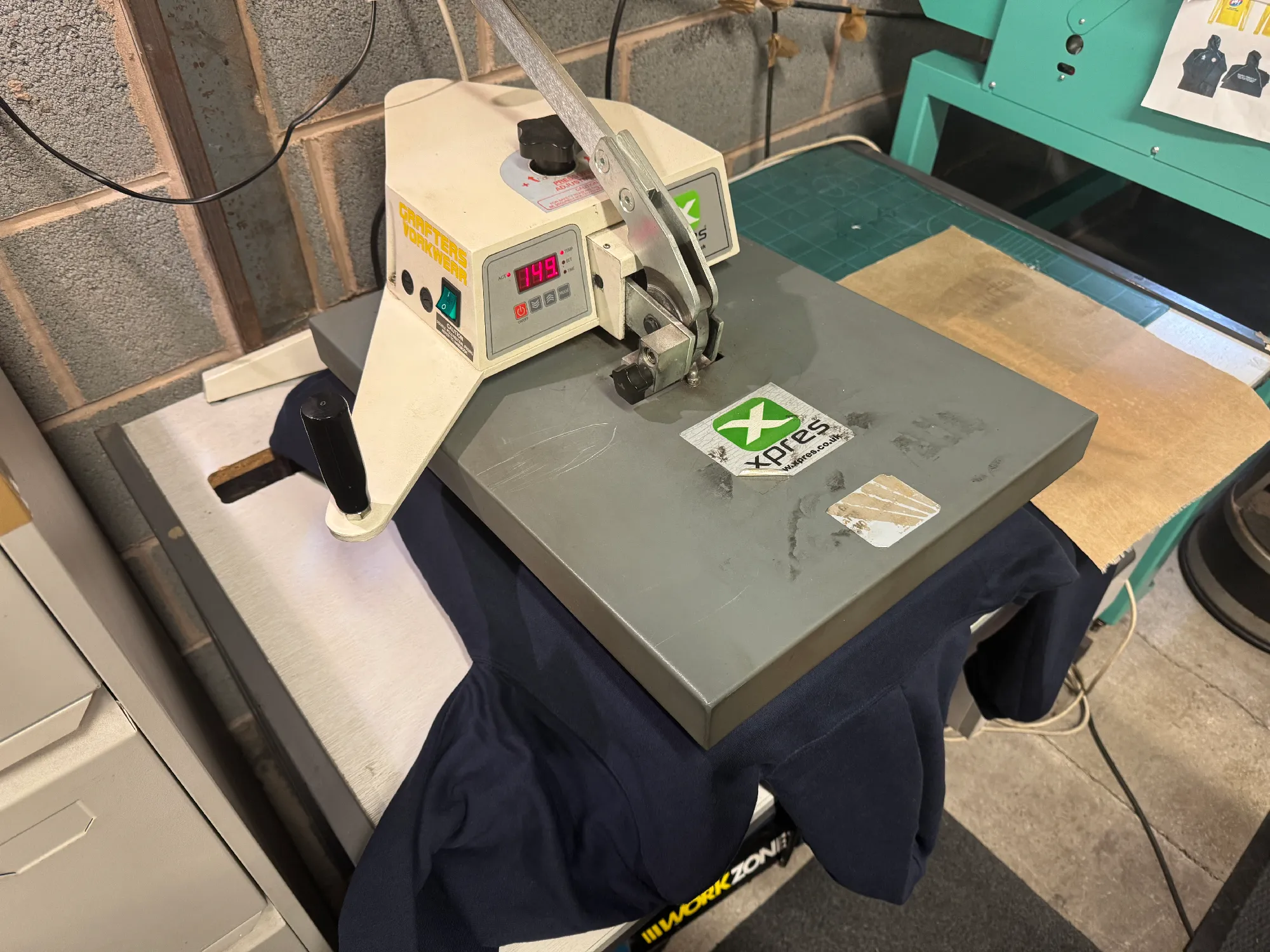 At the heat press machine, the design is placed over the end product, and a slab of heat is pressed over the design for roughly 10 seconds. Once lifted, all that remains is to peel off the rest of the special paper, as the inks have already been pushed into the item.